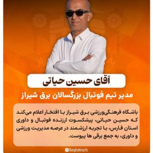 باشگاه فرهنگیورزشی برق شیراز با صدور حکمی، حسین…